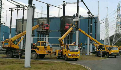 伸縮臂高空車載人高空作業現場